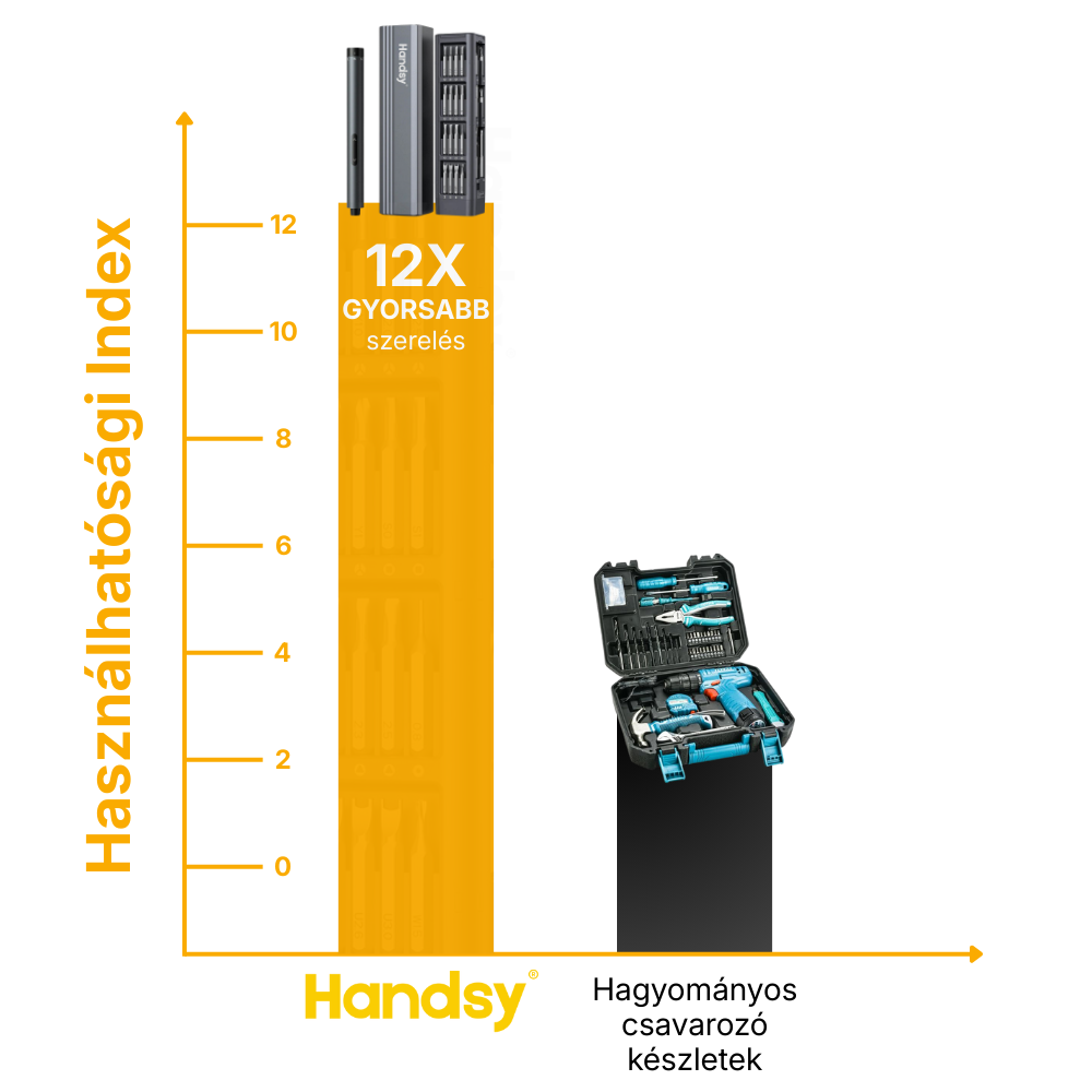 A Handsy™ Pro lényegesen hatékonyabb megoldást kínál a hagyományos csavarozó készletekkel szemben.