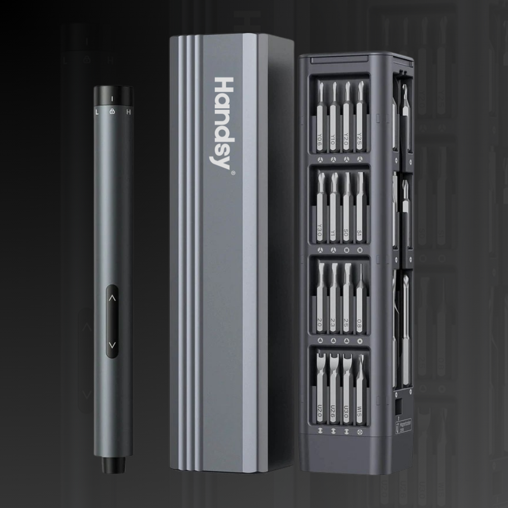 A Handsy™ kifejezetten precíziós és otthoni szerelési feladatokra készült. Ideális telefonok, laptopok, kisebb elektronikai eszközök, bútorok és egyéb mindennapi javítások csavarozásához.